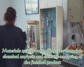 b.接收后合格的原材料,由化驗人員取樣化驗成分(包括各種生鐵、焦炭、鐵合金等),將化驗結果交配料人員。(附化驗設備、操作照片)