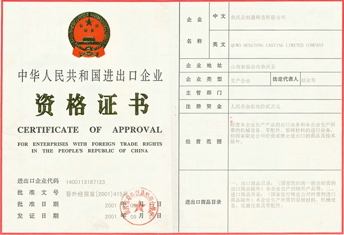 中華人民共和國進出口企業(yè)資格證書
