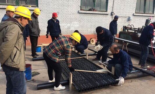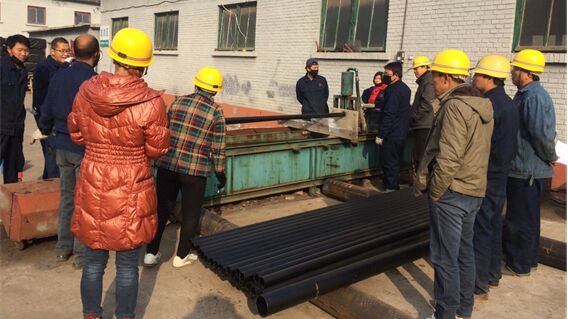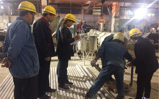 圖7 技術顧問鞏師傅檢查管子內表面 圖8 技術顧問鞏師傅發言