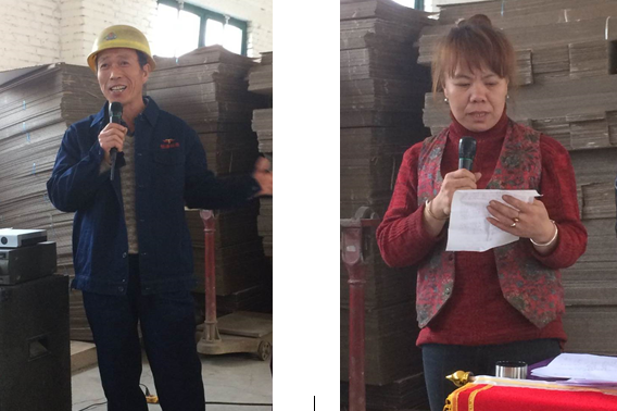 圖9 優秀團隊代表周清海發言 圖10 優秀員工代表李玉琴發言